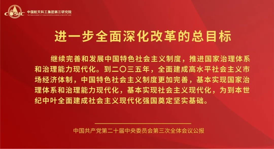 黨的二十屆三中全會,是在以中國式現(xiàn)代化全面推進強國建設、民族復興偉業(yè)的關鍵時期召開的一次十分重要的會議。航天三院黨委將學習好宣傳好貫徹好黨的二十屆三中全會精神作為當前和今后一個時期的一項重大政治任務,高度重視,迅速行動,引導三院全體黨員干部職工把思想和行動統(tǒng)一到全會精神上來,把智慧和力量凝聚到落實全會精神和部署上來,聚焦主責主業(yè),履行強軍首責,持續(xù)推動飛航事業(yè)高質(zhì)量發(fā)展。