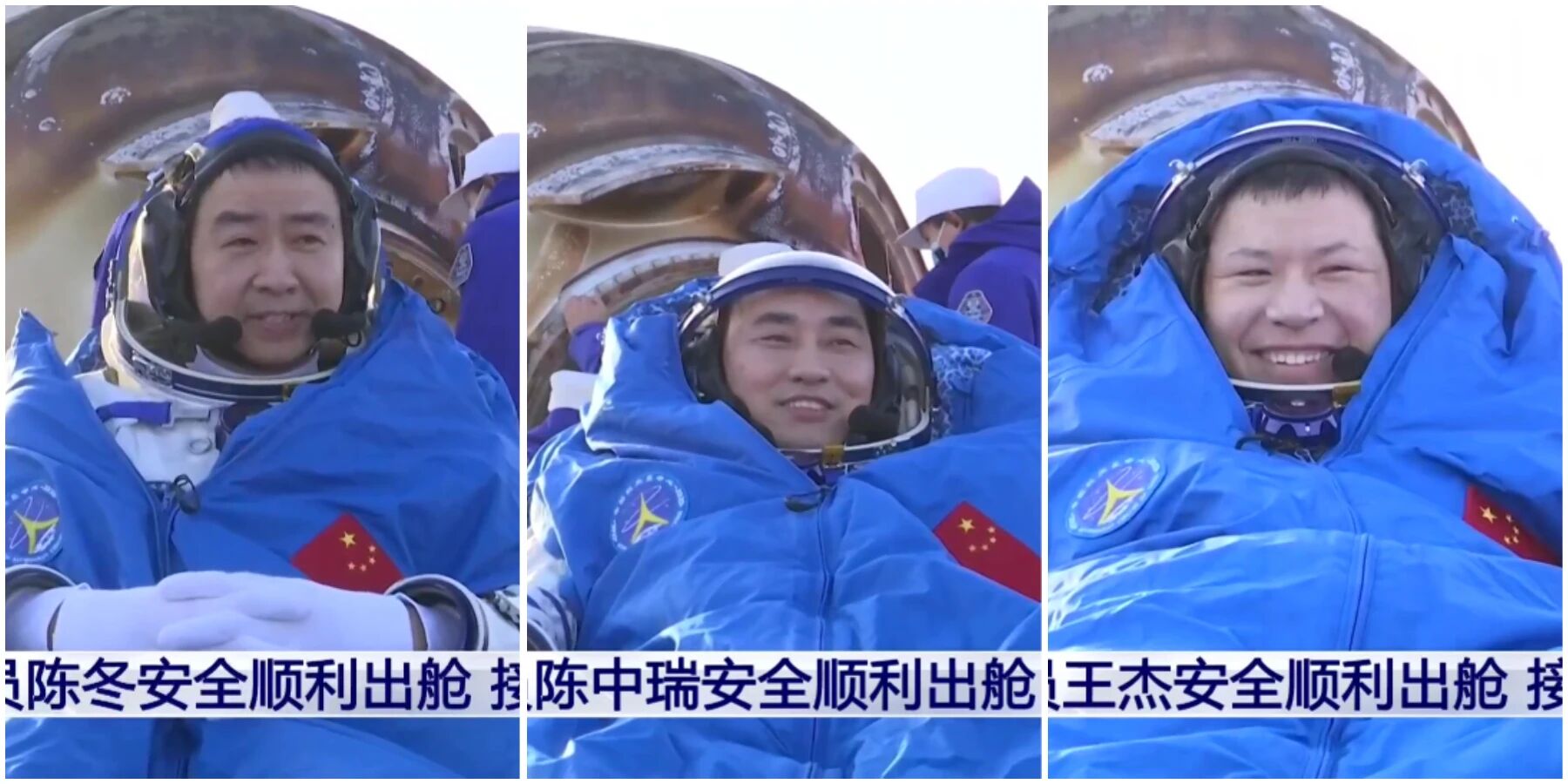 17時(shí)21分,神舟二十號(hào)航天員陳冬、陳中瑞、王杰全部安全順利出艙,健康狀態(tài)良好。